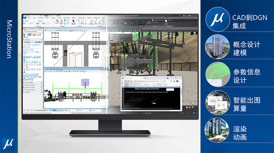 MicroStation:Bentley 的旗舰产品,是一款功能强大的 CAD 软件,用于全球基础设施的设计、建造与实施。支持 2D 绘图、3D 建模、渲染、编辑、可视化、注释、文档编制、装配排序等功能,具有强大的建筑信息模型(BIM)能力,可帮助建筑师和工程师在各类项目中提高设计、建模、可视化、文档制作和测绘的效率。