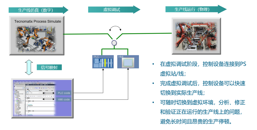 设备 PLC 程序调试、机器人轨迹验证、虚实联动,缩短现场调试周期与风险。